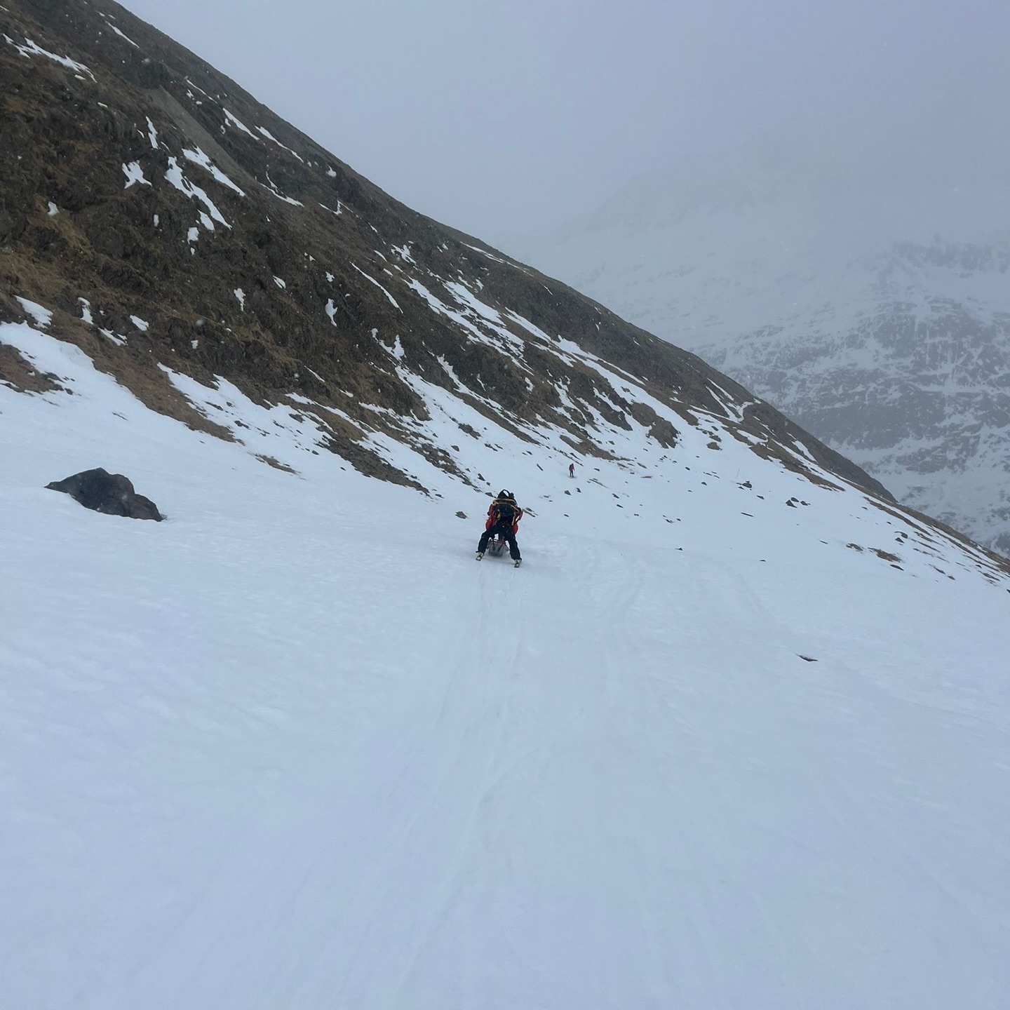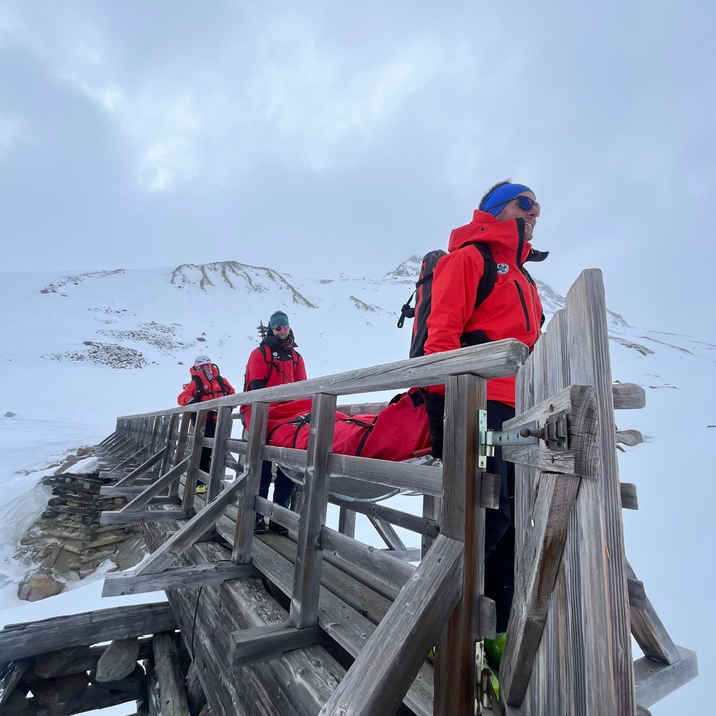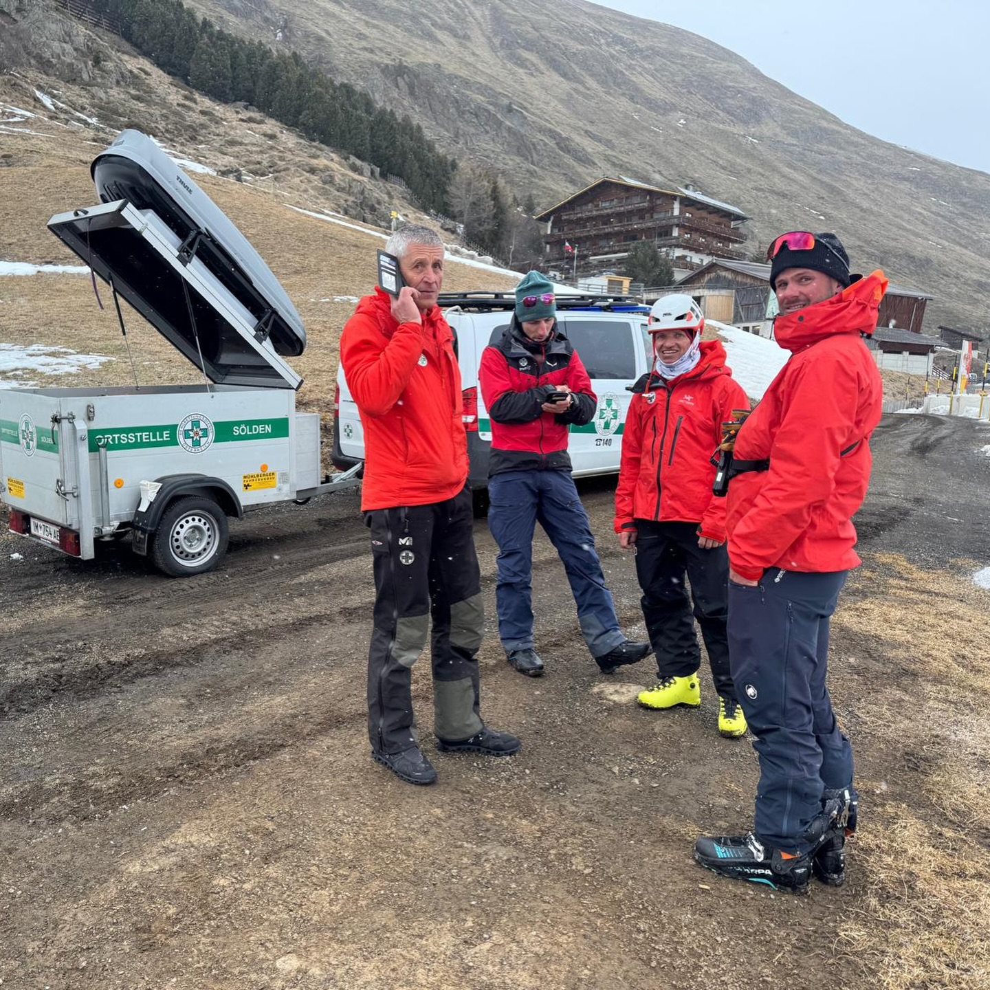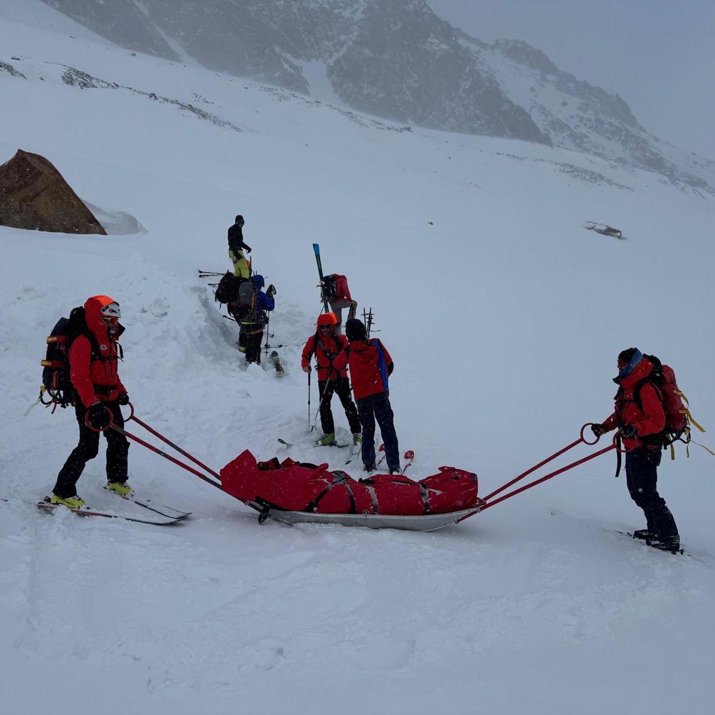 Dem anschließend alarmierten Polizeihubschrauber Libelle gelang es jedoch, unsere Mannschaft bis unterhalb der Vernagthütte zu fliegen. Von dort stiegen die Einsatzkräfte mit Tourenski zur verletzten Person auf. Im Gepäck befanden sich medizinisches Material, Akja, Wärmemanagement sowie eine Vakuummatratze und ein Bergesack.