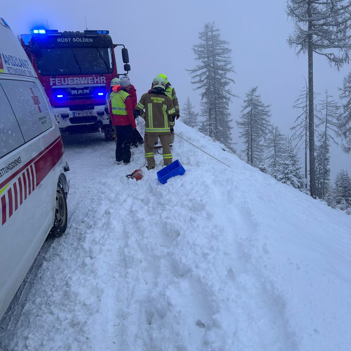Einsatzmeldung: LT A2-Verkehr-Absturz PKW, Bergrettung Sölden, unterhalb Zufahrt Eugen’s Obstlerhütte / Hochsölderstraße